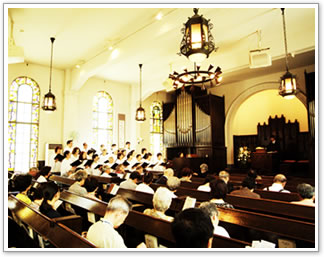 教会の礼拝になれておられない方はどうぞ受付でお気軽にその旨おっしゃってください。係の者が、ご案内いたします。聖書と讃美歌もその際お貸しいたします。また差し支えなければ、係の者が同席させていただきます。わからないことがあれば、ぜひおっしゃってください。